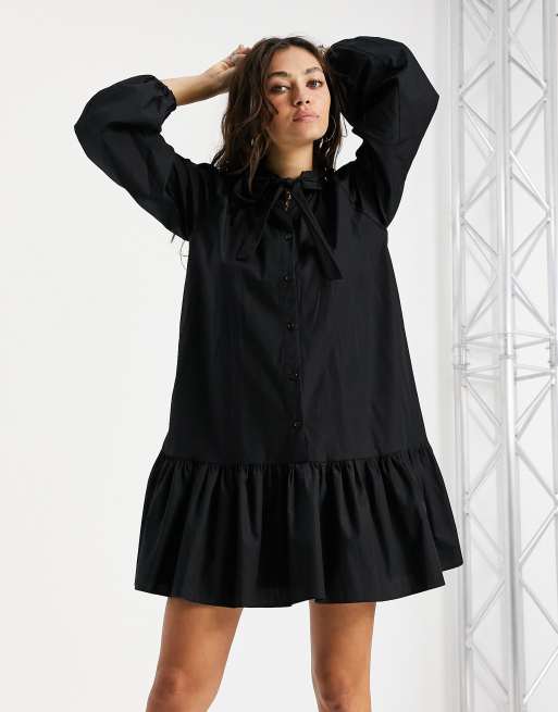 Topshop – Popeline-Hemdkleid in Schwarz