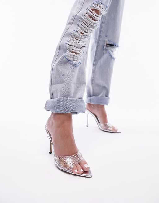 Topshop – Romy – Verzierte Sandaletten in Silber