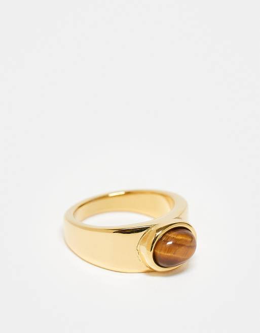 Topshop – Rylie – Goldfarbener Ring aus Edelstahl mit braunem Stein