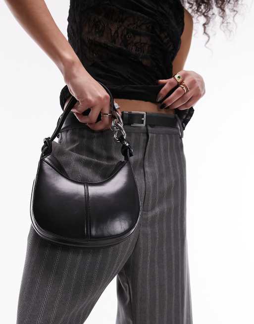 Topshop – Santiago – Mini-Schultertasche in Schwarz mit Kettenverzierung