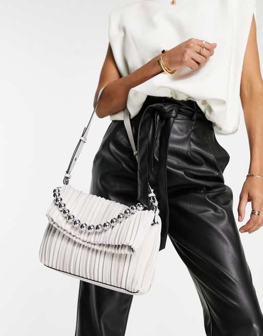 Topshop – Schultertasche in Weiß mit Kettendetail und Zierfalten