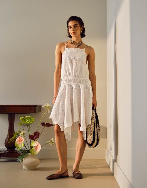Topshop – Schweres Minikleid in Weiß mit Zipfelsaum und Stickerei