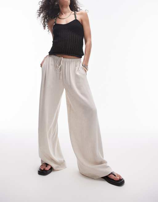 Topshop – Sehr weit geschnittene Hose aus natürlichem Leinen in Stone, Kombiteil