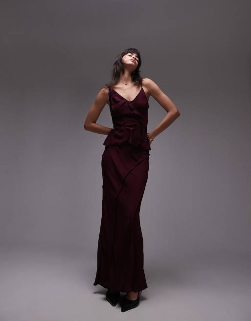Topshop – Set in Burgunderrot mit unversäubertem Saum