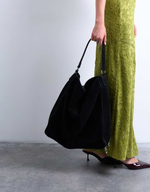 Topshop – Sienna – Schultertasche aus echtem Leder in Schwarz