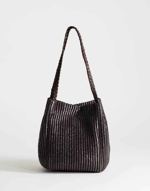 Topshop – Singer – Gewebte Schultertasche in Schokobraun