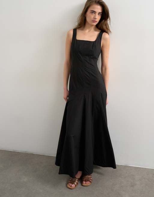 Topshop – Sommerkleid in Schwarz mit Tellerrock und tief angesetztem Saum