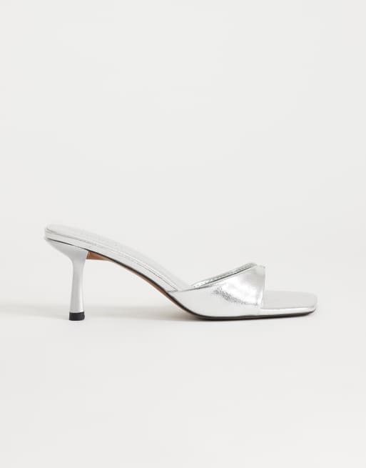 Topshop – Sophie – Asymmetrische Mules in Silber mit mittelhohem Absatz