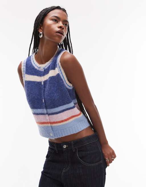 Topshop – Strick-Tanktop mit mehrfarbigen Streifen