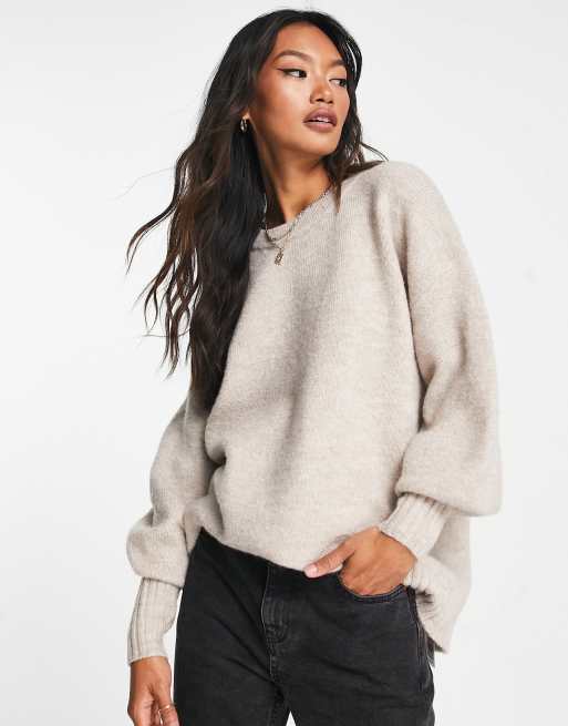 Topshop – Strickpullover in Nerzbraun mit Rundhalsausschnitt