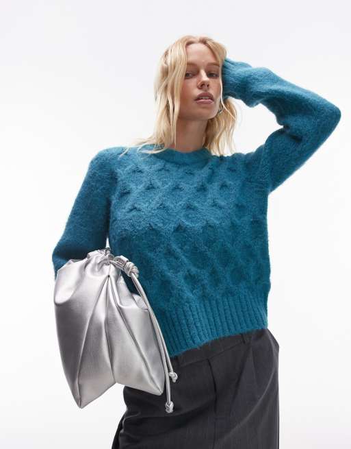 Topshop – Strickpullover in Petrol mit Zopfmuster