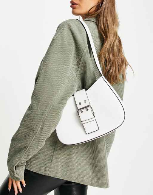 Topshop – Strukturierte, abgerundete Schultertasche in Weiß