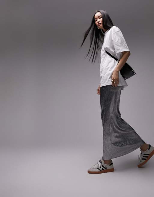 Topshop – Strukturierter Maxirock in Metallic-Silber