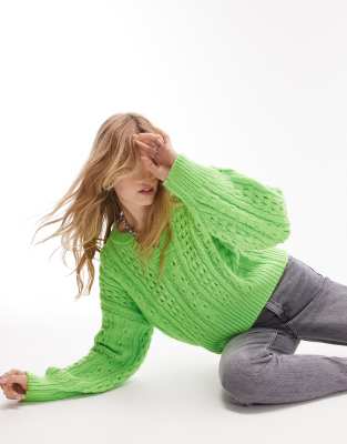 Topshop – Strukturierter Strickpullover in Grün mit Zopfmuster