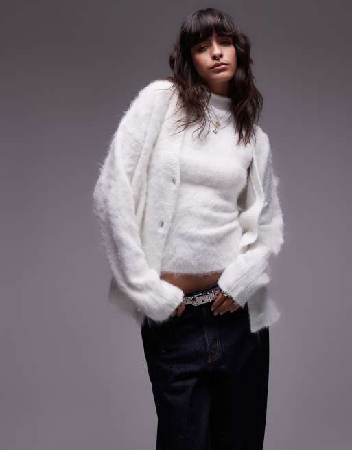 Topshop – Superflauschige Oversize-Strickjacke in Elfenbeinweiß, Kombiteil