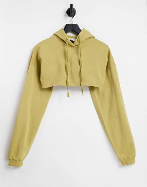 Topshop – Superkurzer Kapuzenpullover in Hellgrün