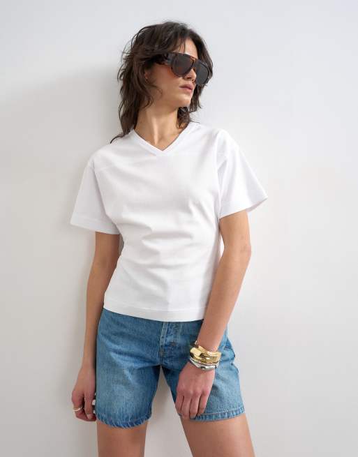 Topshop – Tailliertes in Weiß mit V-Ausschnitt