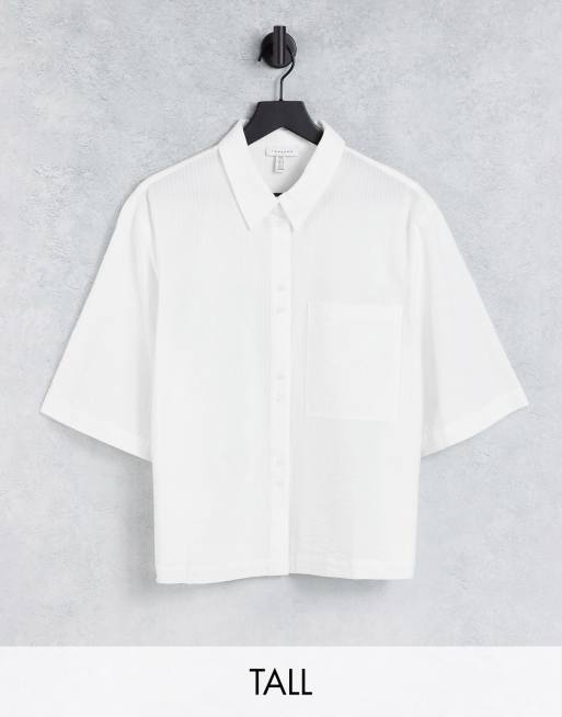 Topshop Tall – Kurze Bluse in Weiß mit Taschendetail