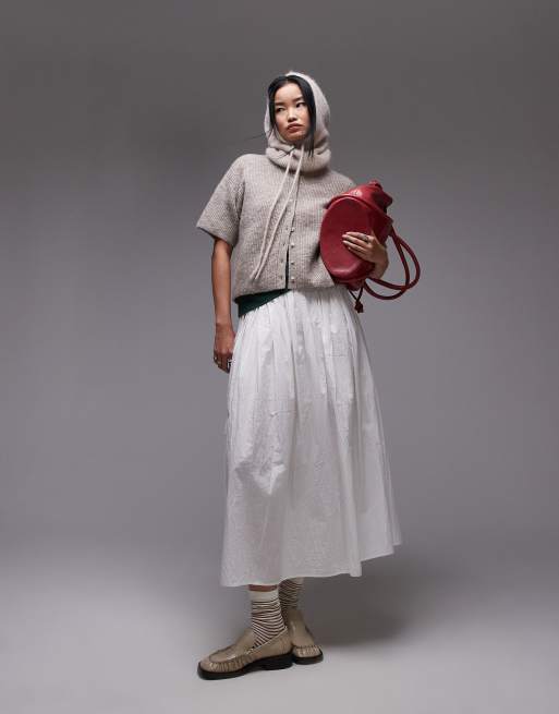 Topshop – Tellerrock aus gewaschener Baumwolle in Elfenbein mit Knitterstruktur