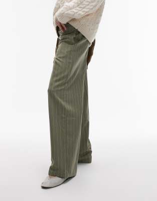 Topshop – Tief sitzende Hose in gestreiftem Grün