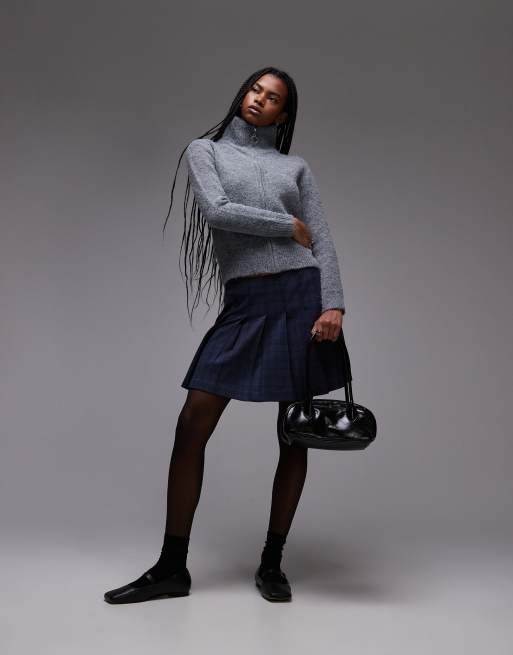 Topshop – Tief sitzender, kurzer Faltenrock mit Karomuster
