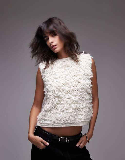 Topshop – Trägertop in handgefertigter Optik aus Schlaufenstrick in Elfenbein