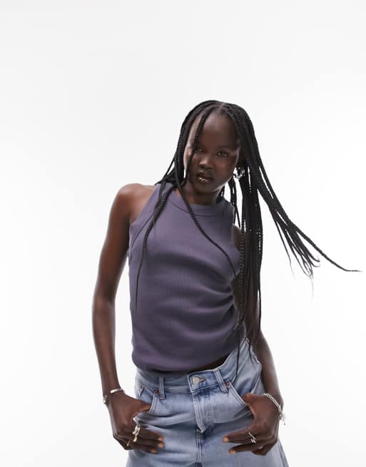 Topshop – Trägertop in Schiefergrau mit Ringerrücken