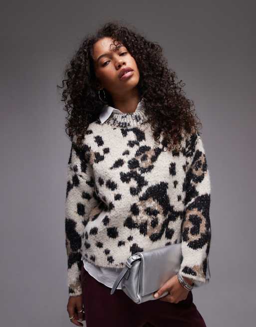Topshop – Ultimate – Flauschiger Strickpullover mit Leopardenmuster und lockerem Schnitt