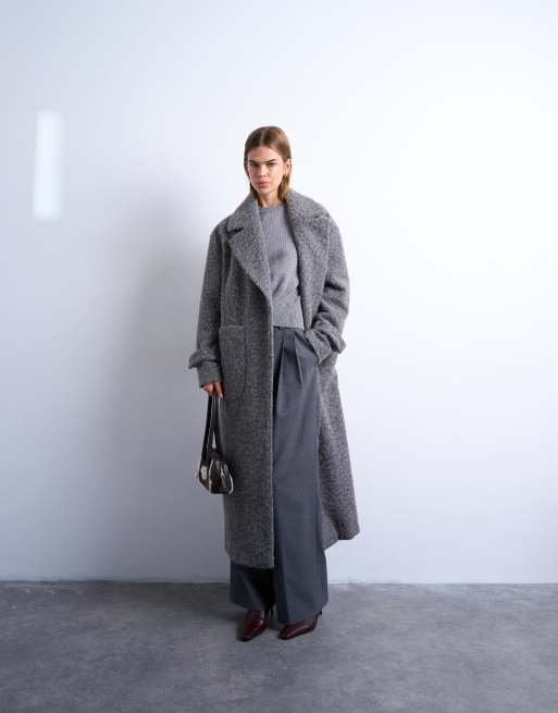 Topshop – Ungefütterter langer Mantel zum Überwerfen aus angerautem Material in Anthrazit