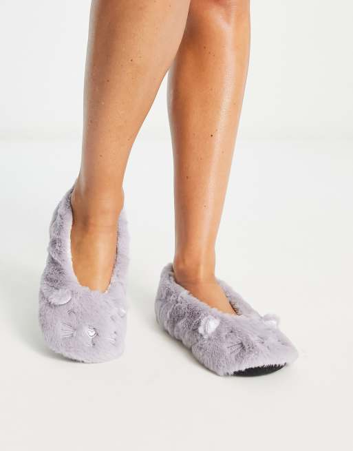 Totes – Flauschige Hausschuhe in Grau mit Katzen-Design