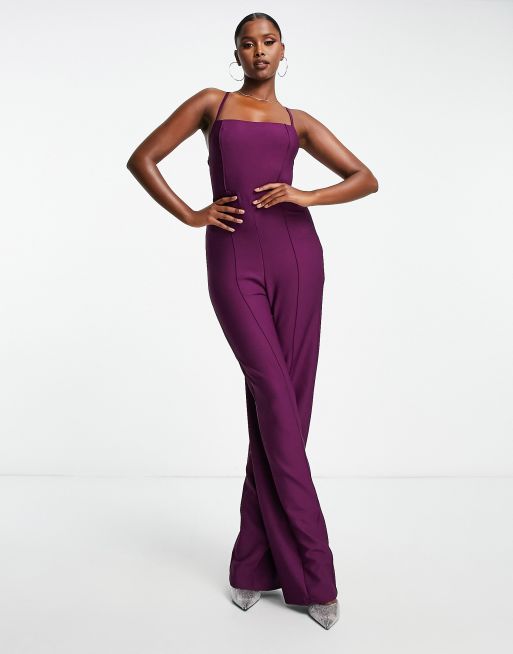 Trendyol – Träger-Jumpsuit mit quadratischem Ausschnitt in Pflaume