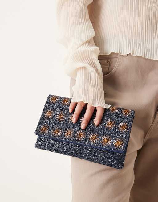 True Decadence – Clutch in Blau und Bronze mit Blumenverzierung