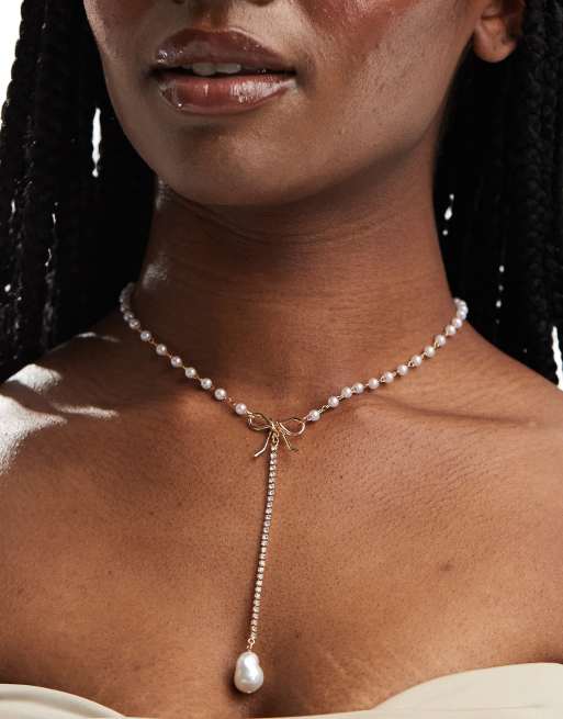 True Decadence – Lasso-Halskette in Gold mit Perlengliedern und Schleifendetail