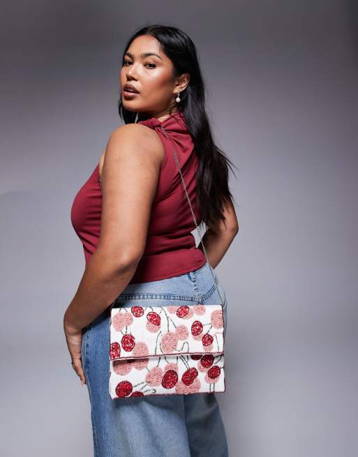 True Decadence – Mehrfarbige Clutch in Gold mit kirschförmigem Perlenbesatz