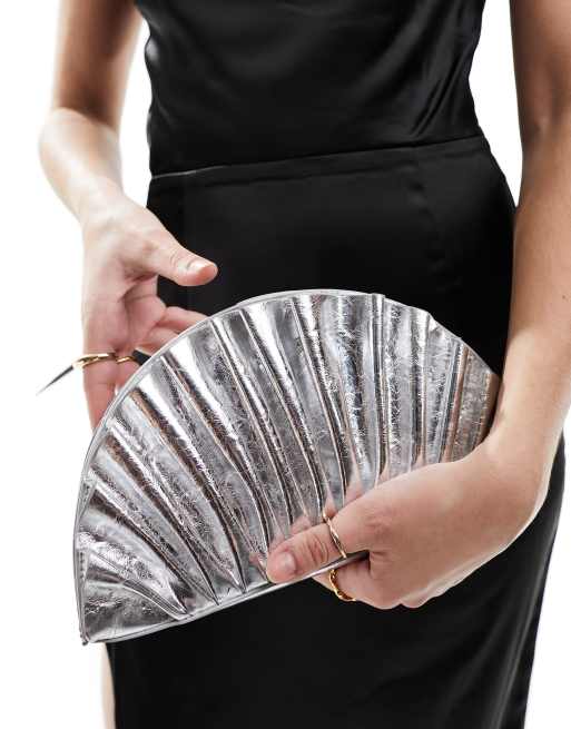 True Decadence – Metallic-Clutch in Silber mit Falten-Design