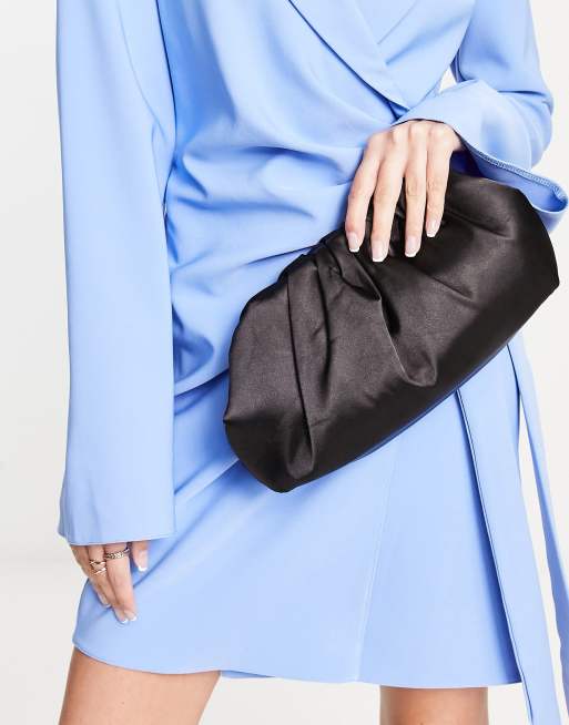 True Decadence – Schlichte Clutch aus gerafftem Satin in Schwarz