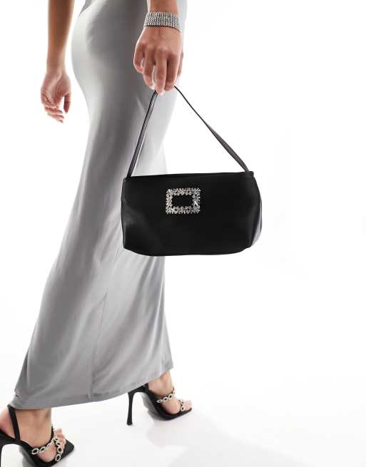 True Decadence – Schultertasche aus schwarzem Satin mit Verzierung