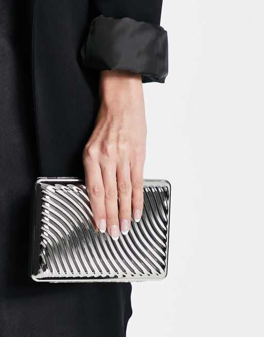True Decadence – Silberfarbene Clutch im Metallbox-Design mit gewellter Struktur
