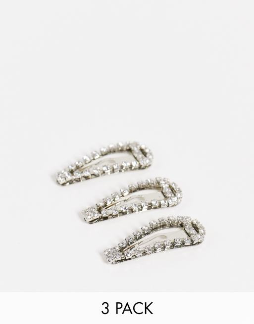 True Decadence – Silberfarbene Haarklammern mit Kristallverzierung im 3er-Pack