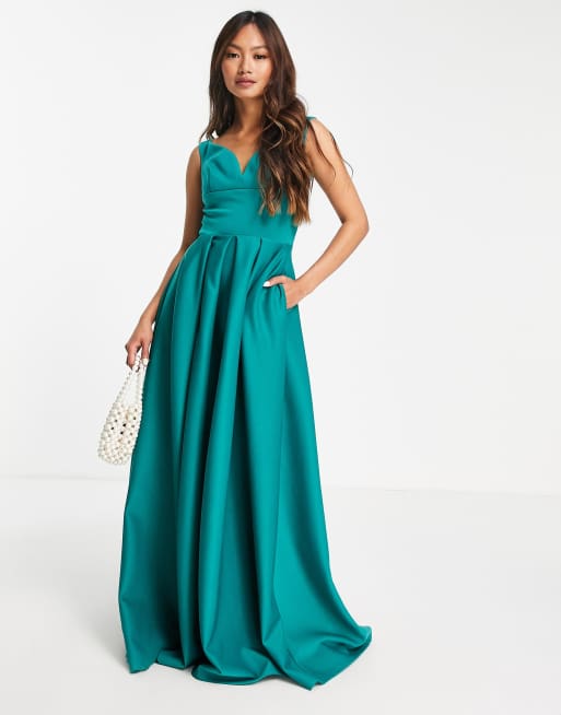 True Violet – Black Label – Langes Ballkleid in Smaragdgrün mit Herzausschnitt und Taschen