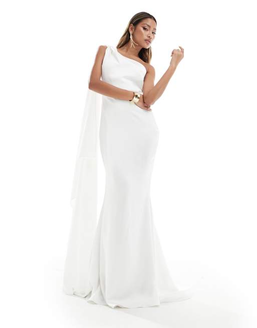 True Violet – Maxikleid in Elfenbeinweiß mit drapierter Schulterpartie