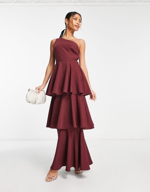 True Violet – Maxikleid in Pflaume mit One-Shoulder-Träger und Rüschen