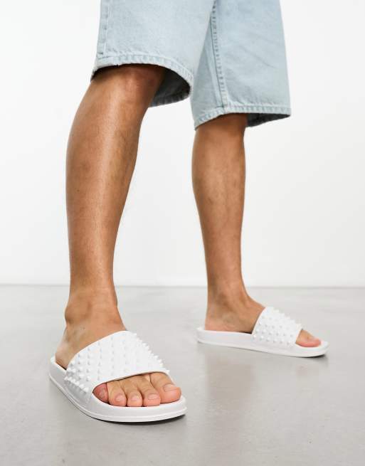 Truffle Collection – Mit Nieten besetzte Slider aus Kunstleder in Weiß