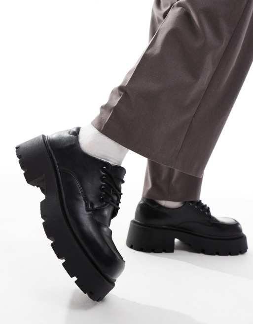 Truffle Collection – Schnürschuhe in Schwarz mit Mokassin-Naht am Vorderblatt und dicker Sohle