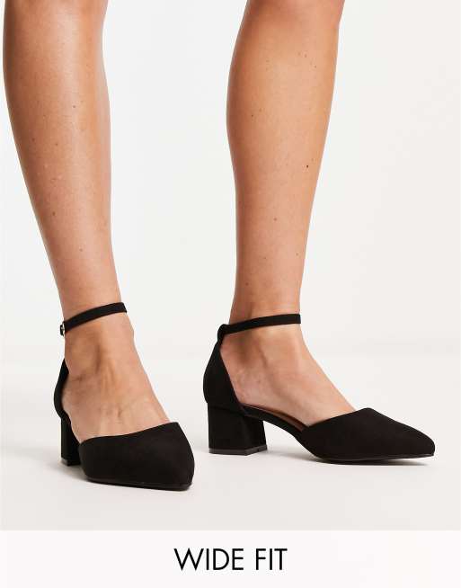 Truffle Collection – Schuhe mit mittlerem Blockabsatz in Schwarz, weite Passform