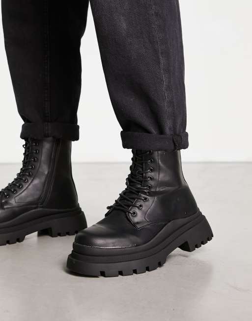 Truffle Collection – Schwarze Schnürstiefel mit dicker Sohle