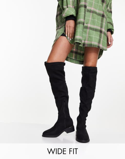 Truffle Collection – Wide Fit – Elastische Overknee-Stiefel mit Absatz in Schwarz