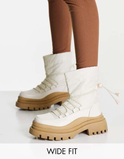 Truffle Collection Wide Fit – Wattierte Stiefel in Creme mit dicker Sohle