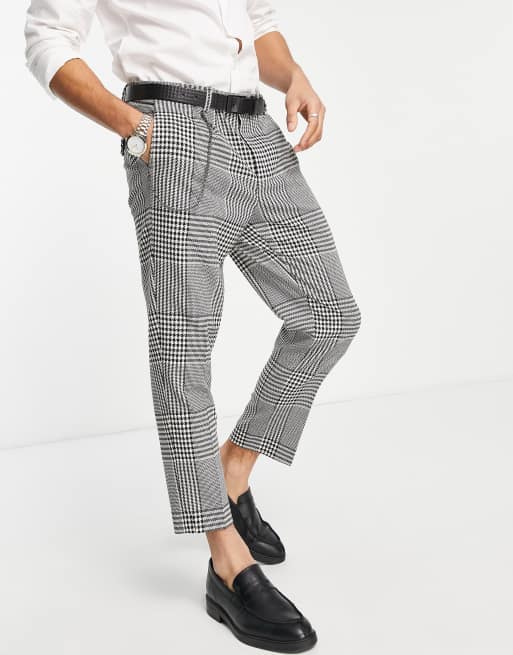 Twisted Tailor – Kennedy – Hose mit übergroßem Karomuster in Schwarz und Weiß