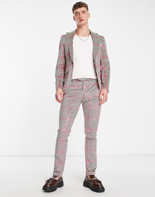 Twisted Tailor – Ribery – Eng geschnittener Anzug mit rosa kariertem Hahnentrittmuster